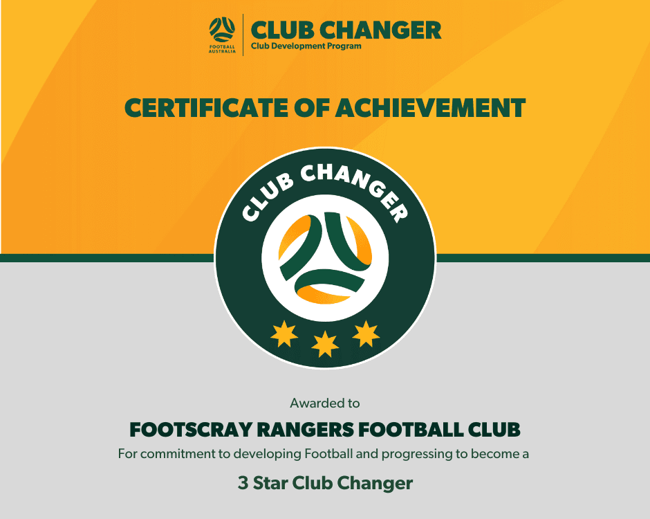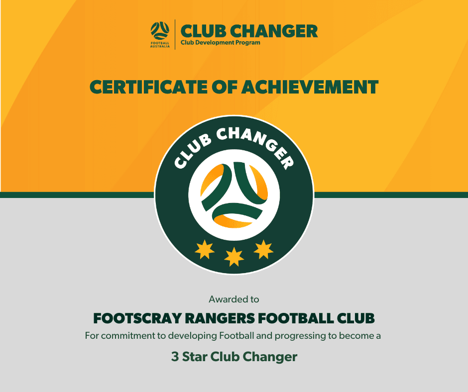 Footscray Rangers Achieve 3-Star Club Changer Status 🌟🌟🌟 Footscray Rangers Football Club is proud to announce that we have officially achieved 3-Star Club Changer Status through […]